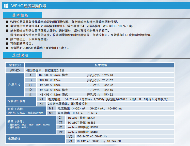 WPHC-A,WPHC-B,WPHC-C,WPHC-D,WPHC-E,WPHC經(jīng)濟(jì)型操作器