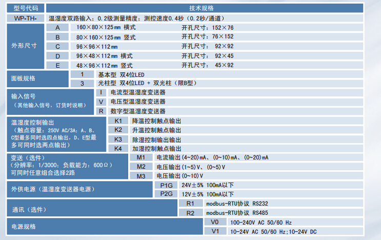 WP-TH-A,WP-TH-B,WP-TH-C,WP-TH-D,WP-TH-E,溫濕度控制器