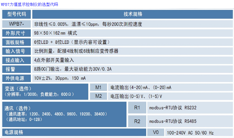 WPB7-M1,WPB7-2,WPB7力值顯示控制儀