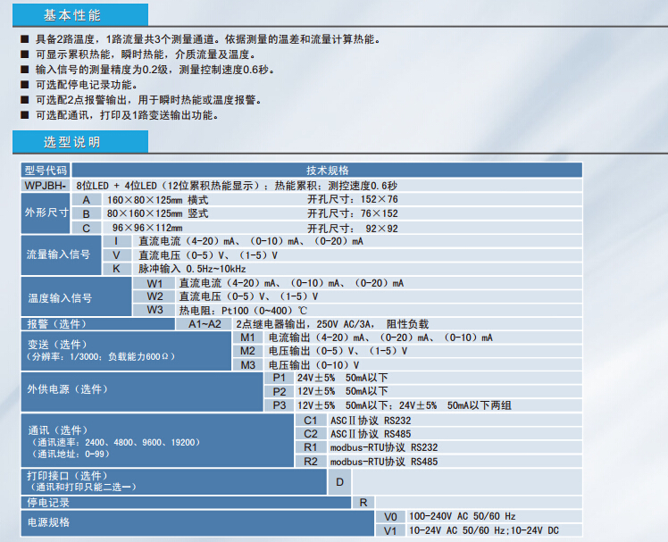 WPJBH-A,WPJBH-B,WPJBH-C,熱能積算儀