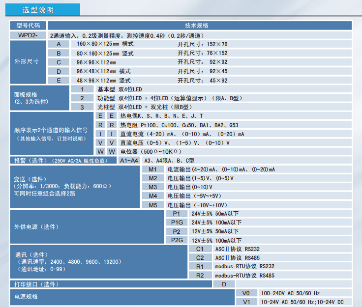 WPD2雙通道數(shù)顯表WPD2-A,WPD2-B,WPD2-C,WPD2-D,WPD2-E