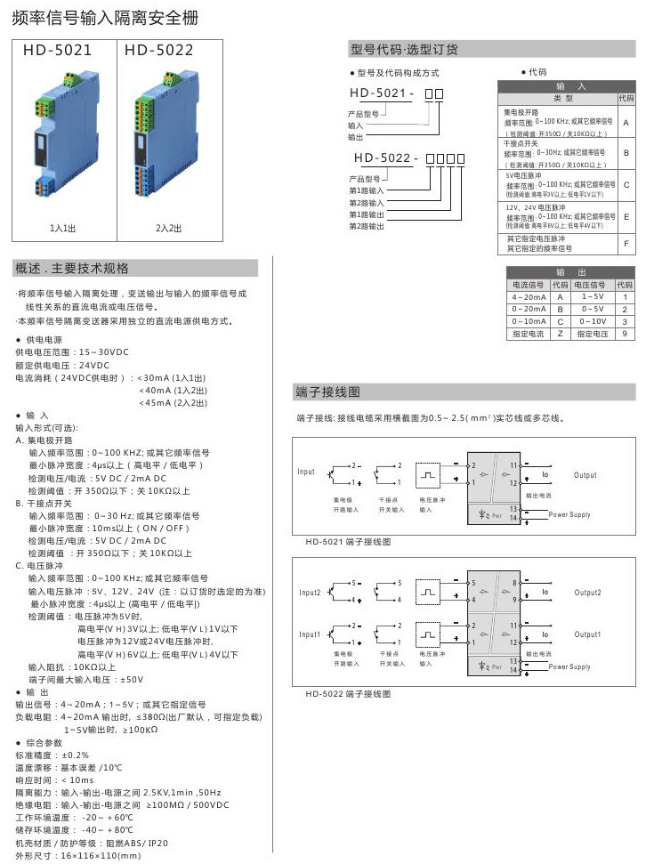 HD-5021,HD-5022,頻率信號(hào)輸入隔離安全柵