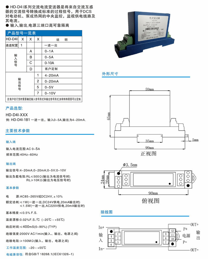 HD-D4I-1A1,HD-D4I-1B2,HD-D4I-1A5,HD-D4I-1A7,HD-D4I-1D5,HD-D4I-1D7,HD-D4I,交流電流變送器