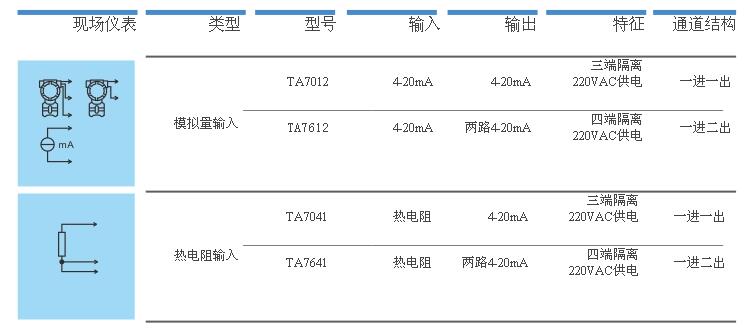 TA7012,TA7612,TA7041,TA7641,TA7000,交流供電型信號隔離器