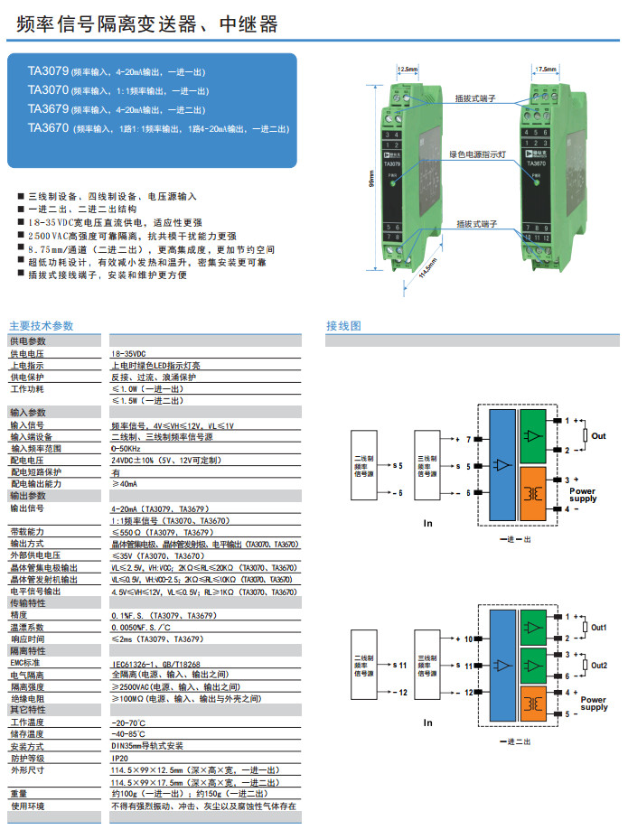 TA3079,TA3070,TA3679,TA3670,頻率信號(hào)隔離變送器、中繼器