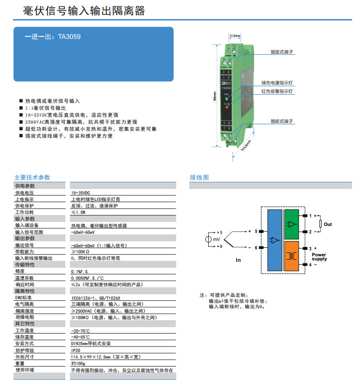 TA3059,毫伏信號(hào)輸入輸出隔離器