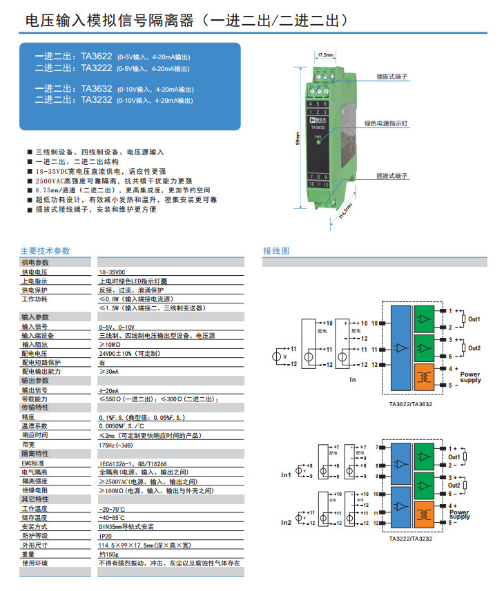 TA3622,TA3222,TA3632,TA3232,電壓輸入模擬信號隔離器