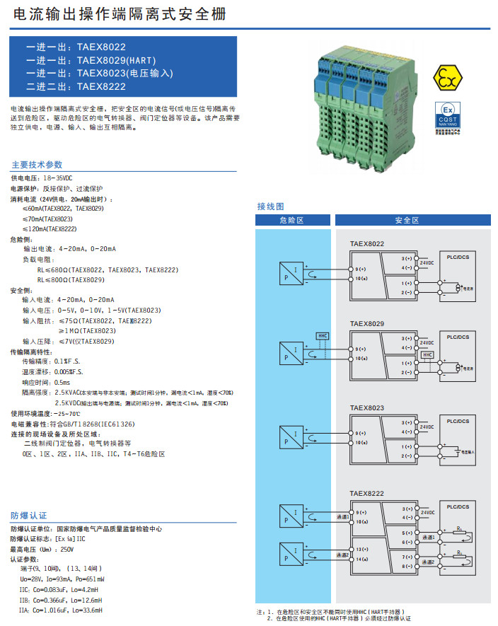 TAEX8022,TAEX8029,TAEX8023,TAEX8222,電流輸出操作端隔離式安全柵