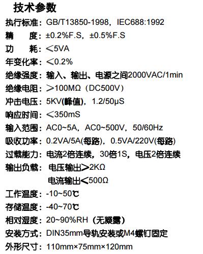 描述: 此型號(hào)為三相三線功率因數(shù)變送器,5Aac 電流互感器(CT)變比電流信號(hào),100Vac電壓互感器(PT)變比電壓信號(hào)輸入,輸出4~12~20mAdc,對應(yīng)功率因數(shù)值-0.5C~1~0.5L,工作電源AC220V。