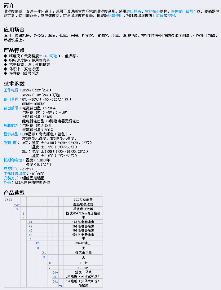 TKSE-2-8M1,TKSE-2-NM3,TKSE-3-8M2,TKSE-3-8N,TKSE-3-NM2,TKSE-3-NN,LCD壁掛式溫濕度變送器