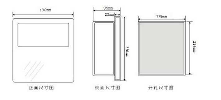 五、產品尺寸圖:外形尺寸:260×196×95;開孔尺寸:234×178
