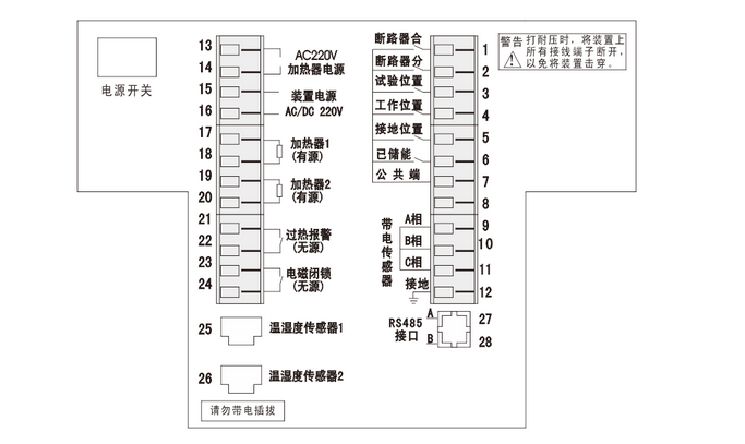 該產(chǎn)品功能強(qiáng)大,有帶電顯示,溫濕度數(shù)字顯示,三相觸頭溫度值顯示,自動(dòng)加熱除濕控制,斷路器分合閘狀態(tài)指示,儲(chǔ)能、接地開關(guān)指示,手車位置指示,一次回路模擬圖,二次回路電壓數(shù)值顯示,人體感應(yīng)柜內(nèi)照明,智能語音防誤提示,語音帶電提示,分合閘回路指示,電壓、電流、有功功率、無功功率、功率因數(shù)、頻率測量以及RS485通訊接口等功能。