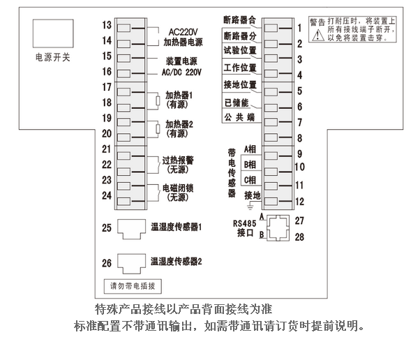 4、高壓帶電指示器的各輸入端分別接入對(duì)應(yīng)的高壓帶電傳感器,高壓帶電指示燈亮,閉鎖有效,閉鎖燈滅;高壓斷開后,帶電指示燈滅,閉鎖接觸,指示燈亮。在MT-ZT140系列產(chǎn)品中,三相(A、B、C)任意一相帶電對(duì)應(yīng)的指示燈亮,閉鎖觸點(diǎn)有效。
