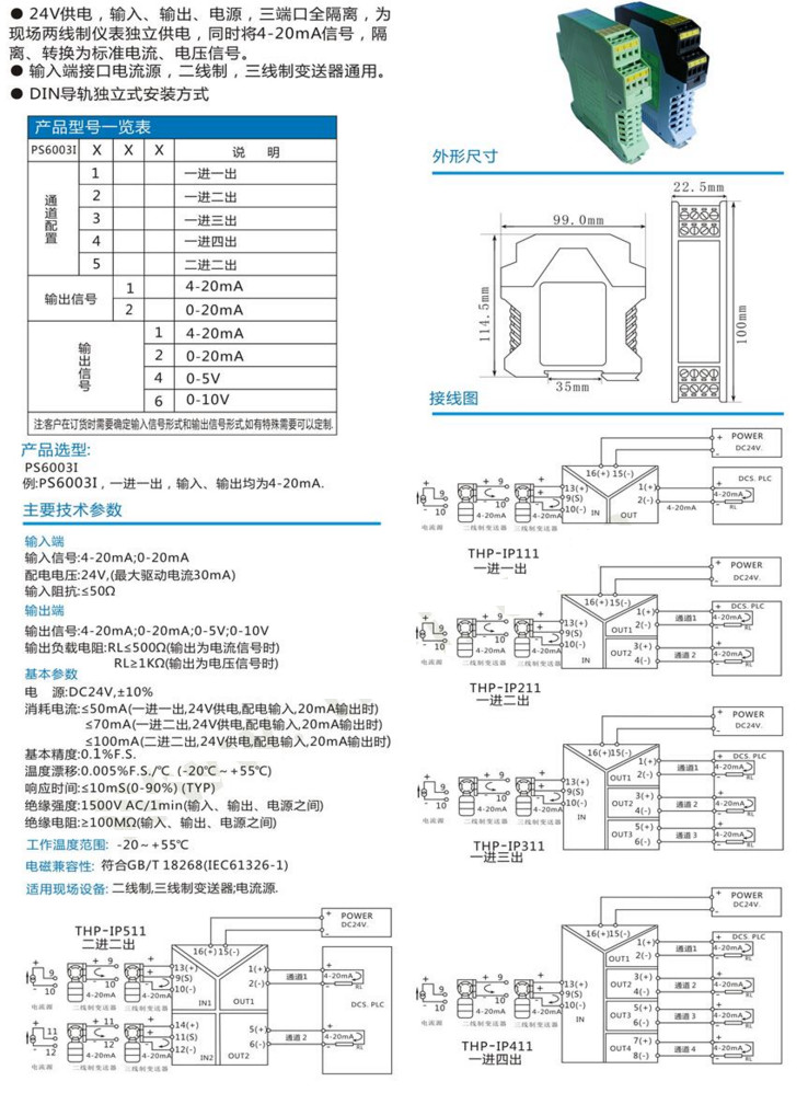 PS6003I111,PS6003I212,PS6003I314,PS6003I416,PS6003I526,PS6003I,多路電流信號(hào)隔離配電器