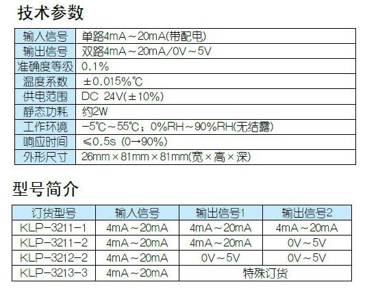 KLP-3211-1,KLP-3211-2,KLP-3212-2,KLP-3213-3,KLP-321,現(xiàn)場電源信號隔離處理器(一入二出)