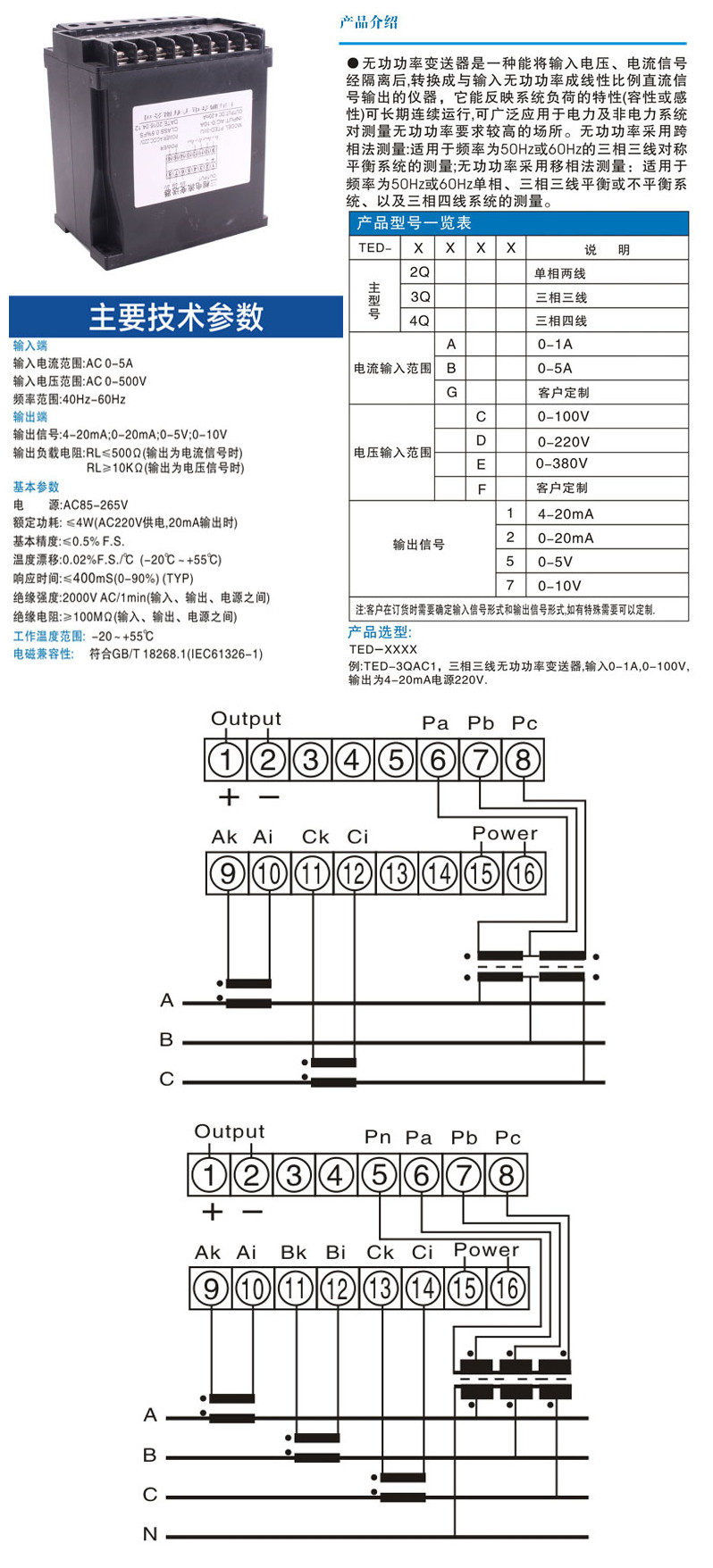 TED-2QAC1,TED-2QBD5,TED-3QAE2,TED-4QAE7,TED-4QGF7,TED-2Q,TED-3Q,TED-4Q,無(wú)功功率變送器