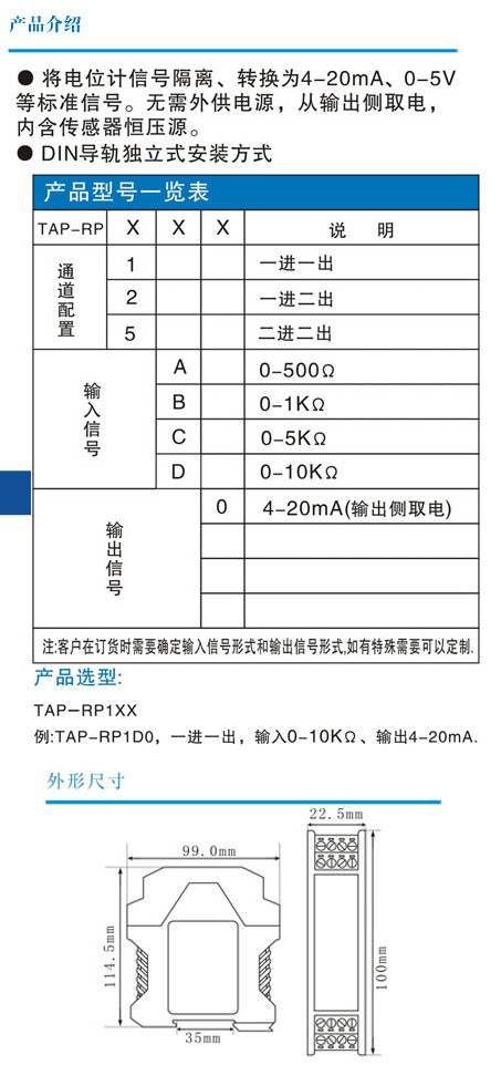 TAP-RP1A0,TAP-RP1B0,TAP-RP2C0,TAP-RP2D0,TAP-RP5A0,TAP-RP,無源型電位計(jì)信號(hào)隔離變送器