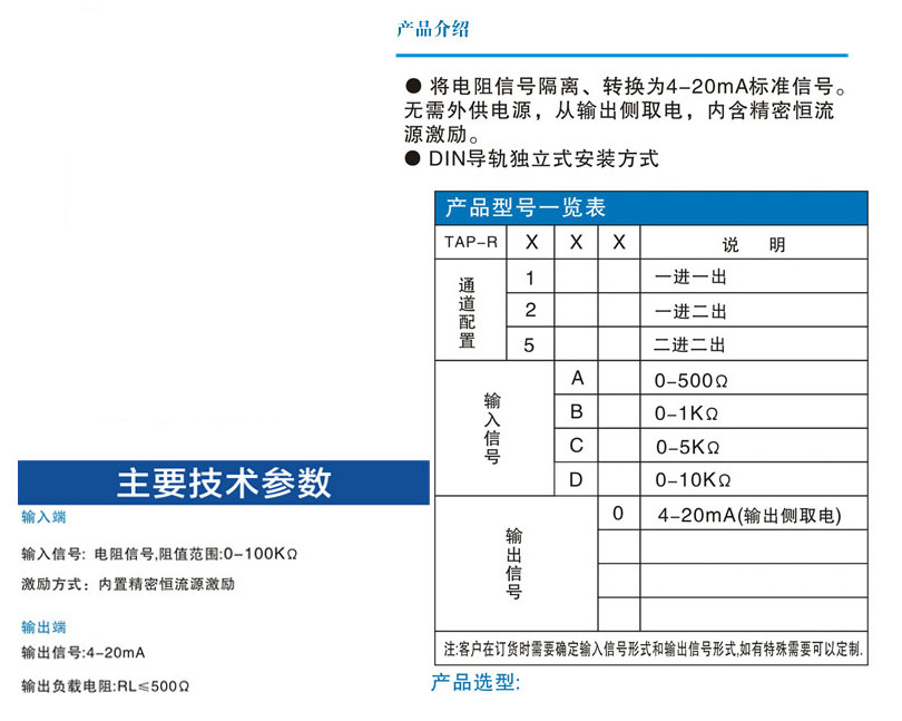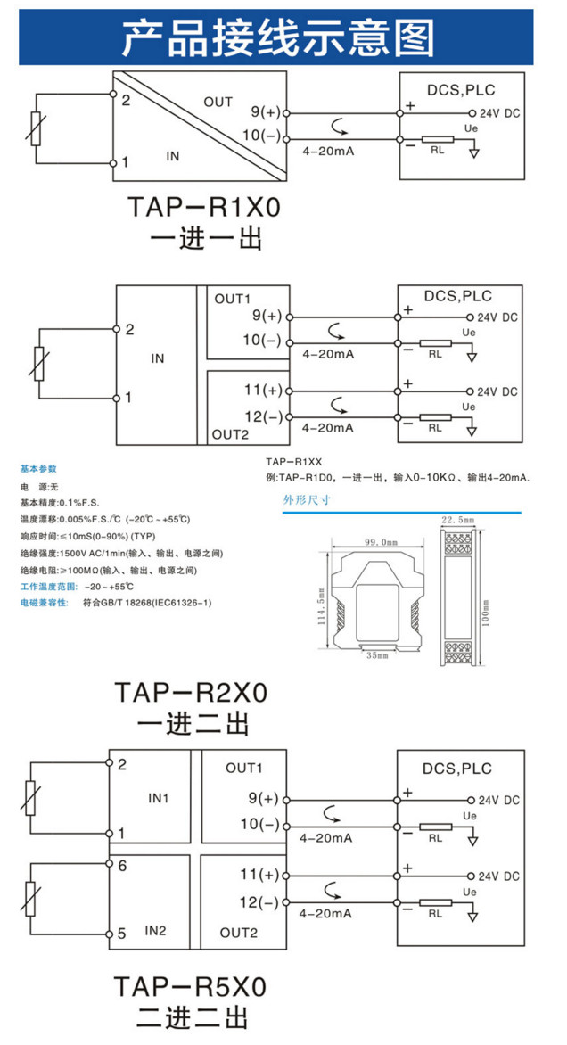 TAP-R1A0,TAP-R1B0,TAP-R1C0,TAP-R1D0,TAP-R5C0,TAP-R5D0,TAP-R,無(wú)源電阻信號(hào)隔離器