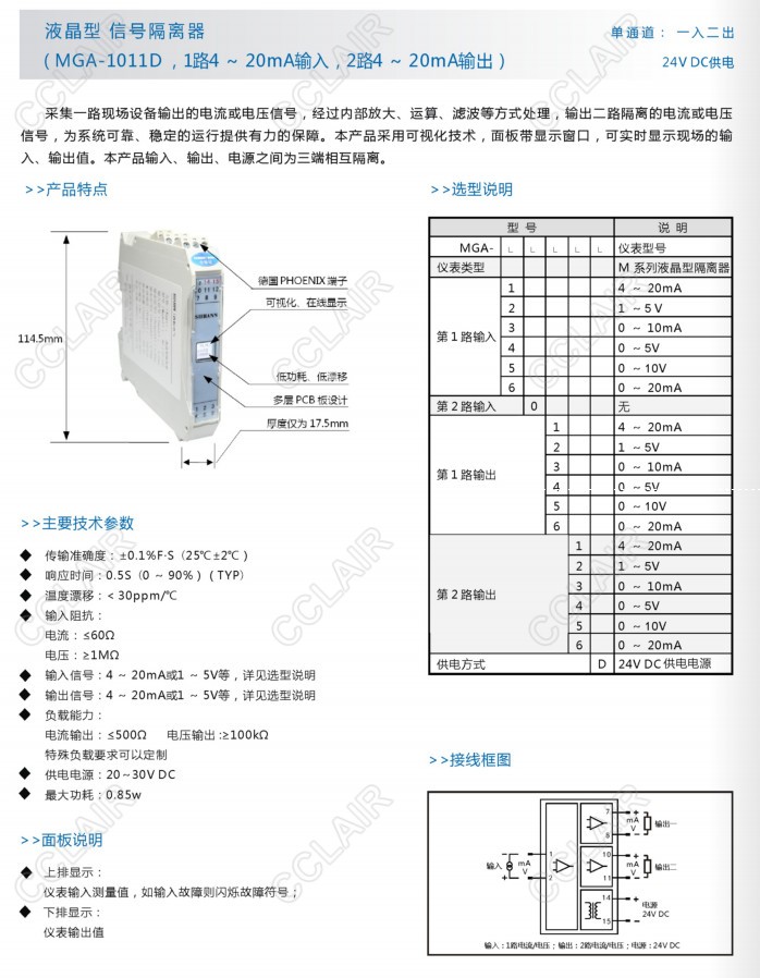MGA-1011D,MGA-1035D,MGA-2034D,MGA-3015D,MGA-4046D,MGA-5053D,MGA-6065D,液晶型信號隔離器