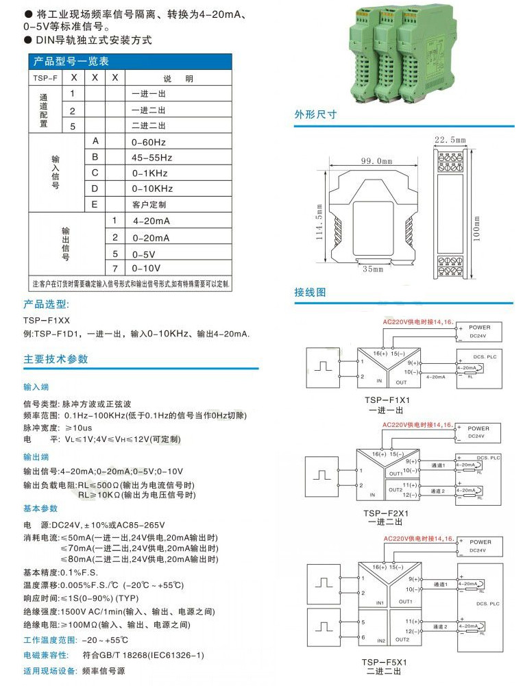 TSP-F1A1,TSP-F1B2,TSP-F1D1,TSP-F2A5,TSP-F2E7,TSP-F5B1,TSP-F5E2,TSP-F,頻率信號(hào)隔離器