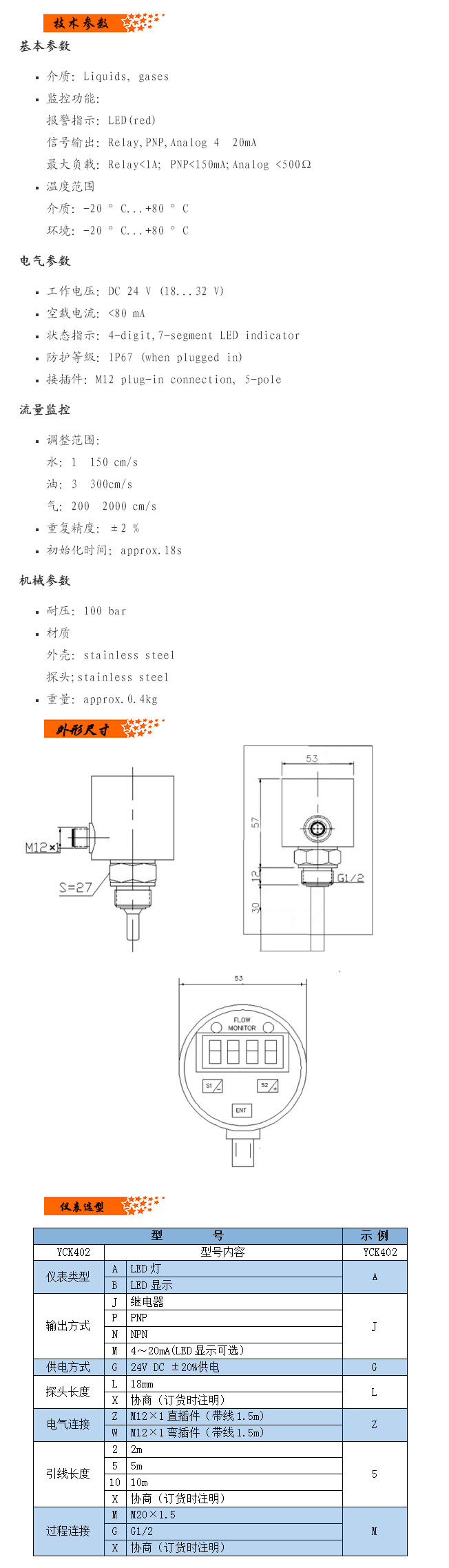 YCK402A,YCK402B,YCK402,顯示熱式流量開關(guān)