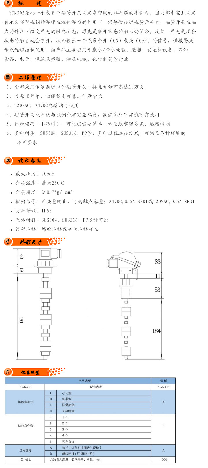 YCK302X,YCK302B,YCK302F,YCK302N,YCK302,液位開關(guān)