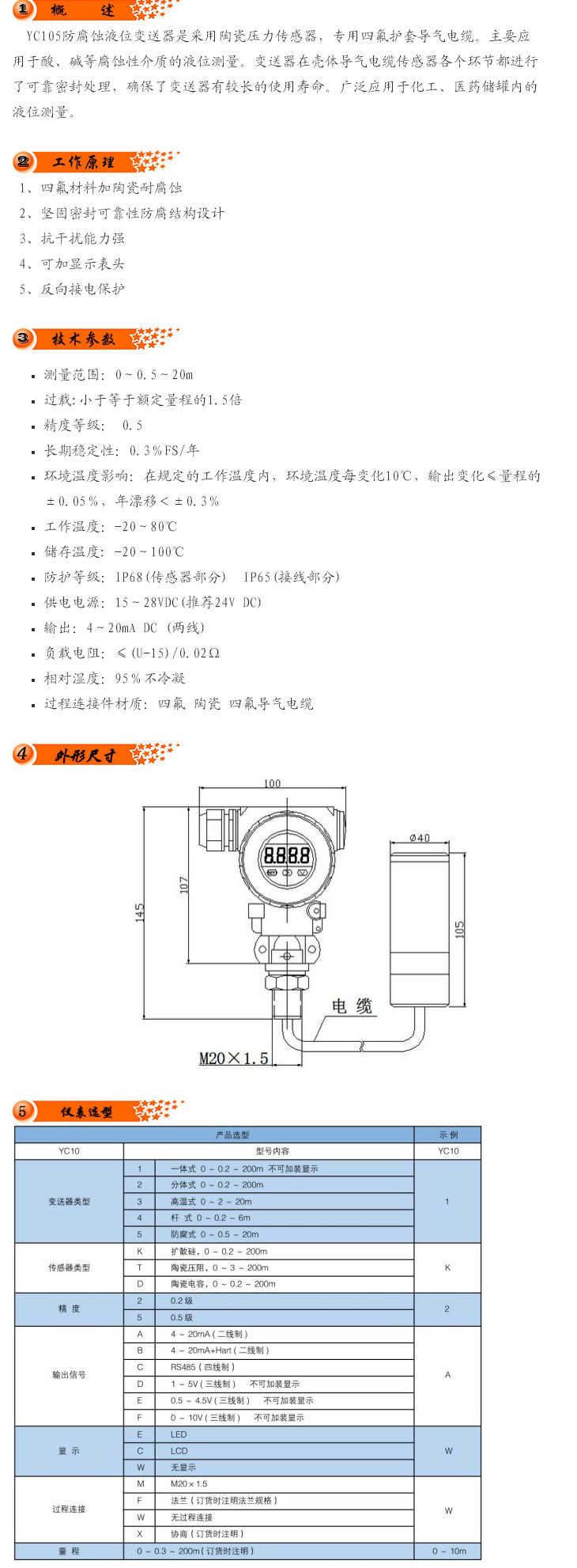 YC105,防腐蝕液位變送器