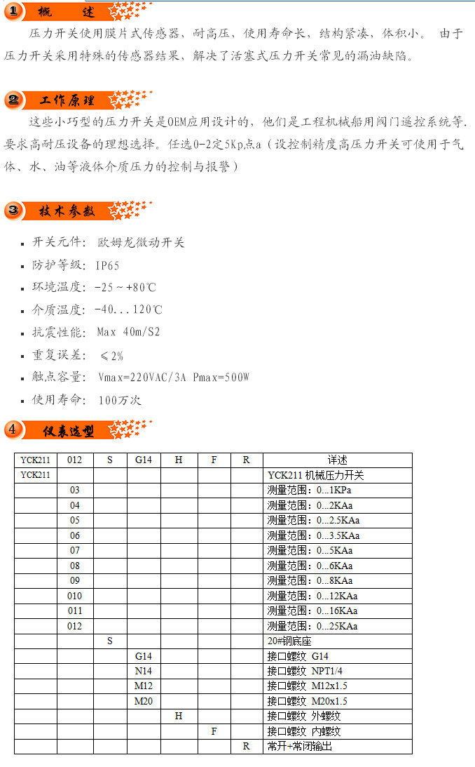 YCK211,機(jī)械壓力開(kāi)關(guān)