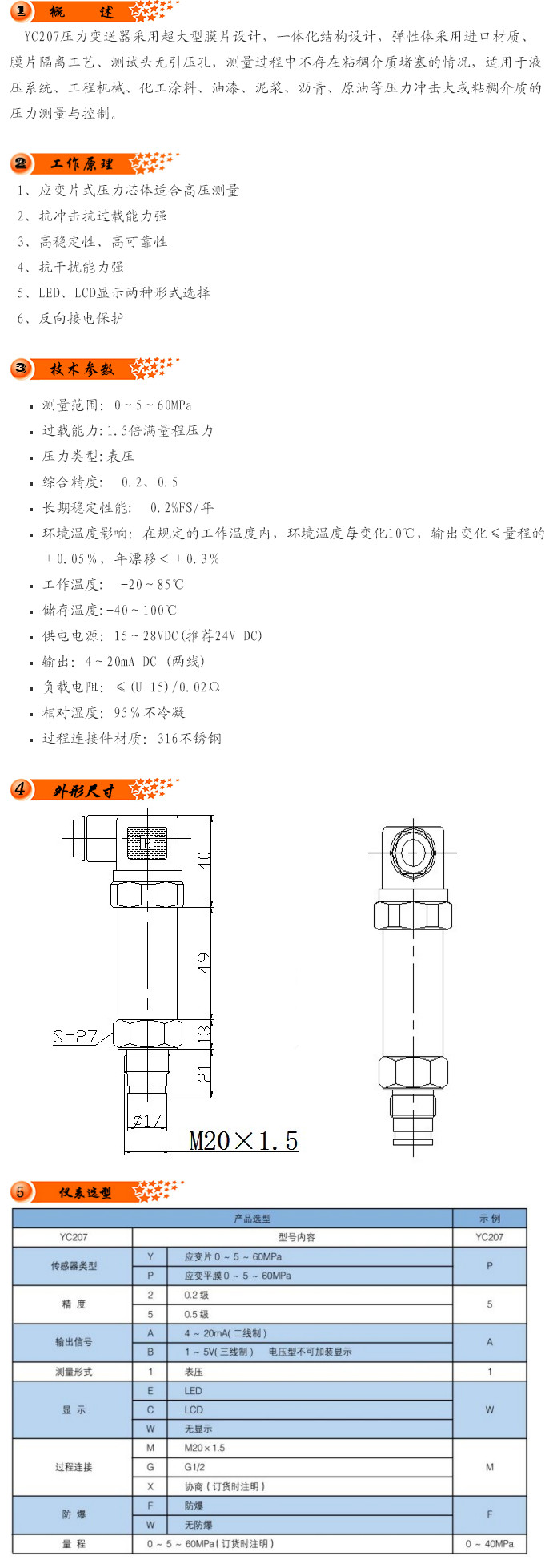 YC207Y,YC207P,YC207,壓力變送器