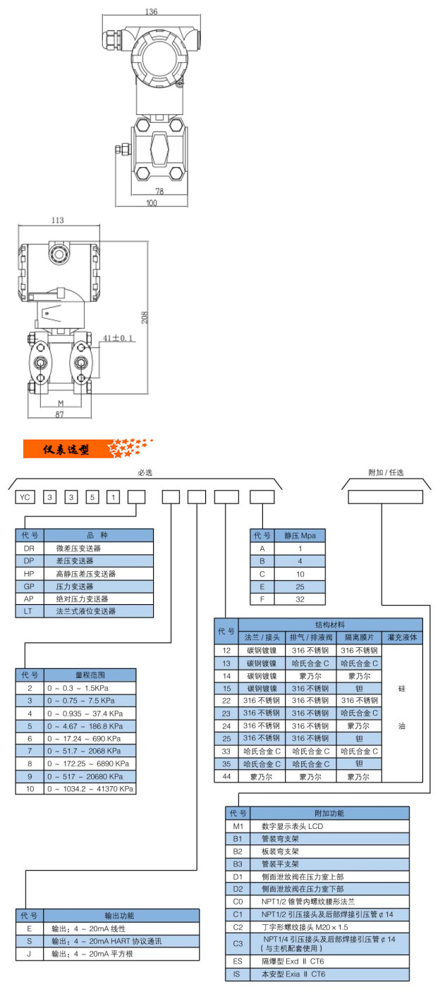 隔離膜片:316L、哈氏C-276或蒙乃爾可選;還可按用戶要求特殊加工