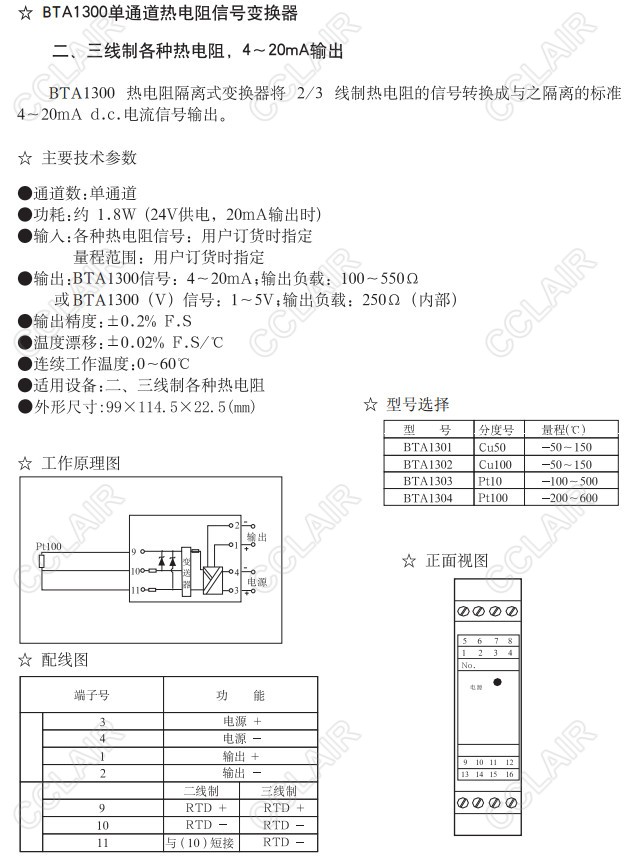 BTA1300,BTA1301,BTA1302,BTA1303,BTA1304,BT(KS)A1300,熱電阻信號變送器