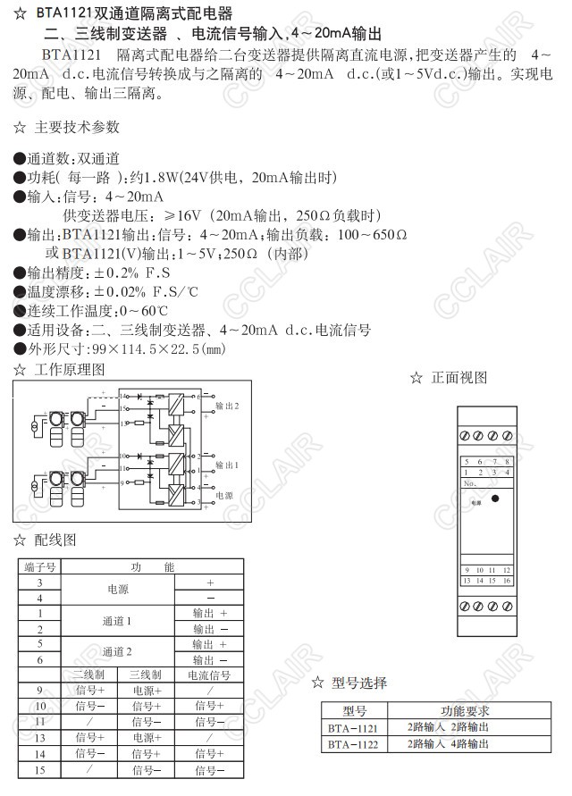 BTA1111,BTA1112,BTA1113,BTA1114,BTA1121,BTA1122,BT(KS)A1100,隔離式配電器