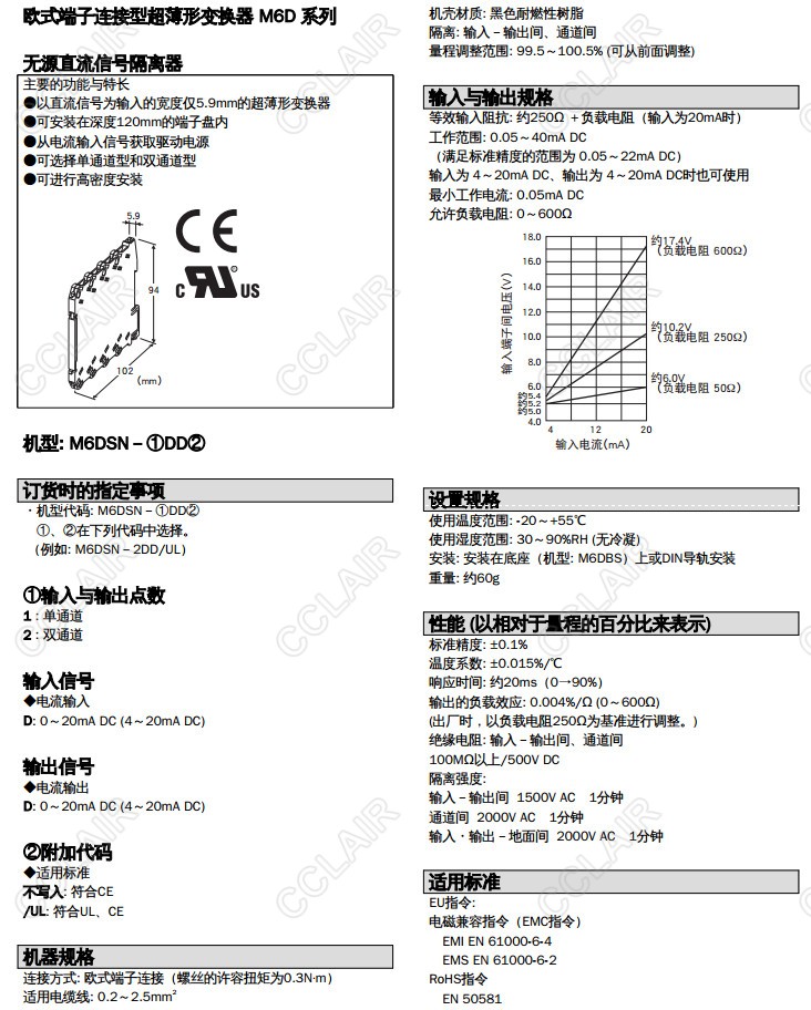 M6DSN-1DD,M6DSN-2DD,M6DSN-1DD/UL,M6DSN-2DD/UL,M6DSN,無源直流信號隔離器