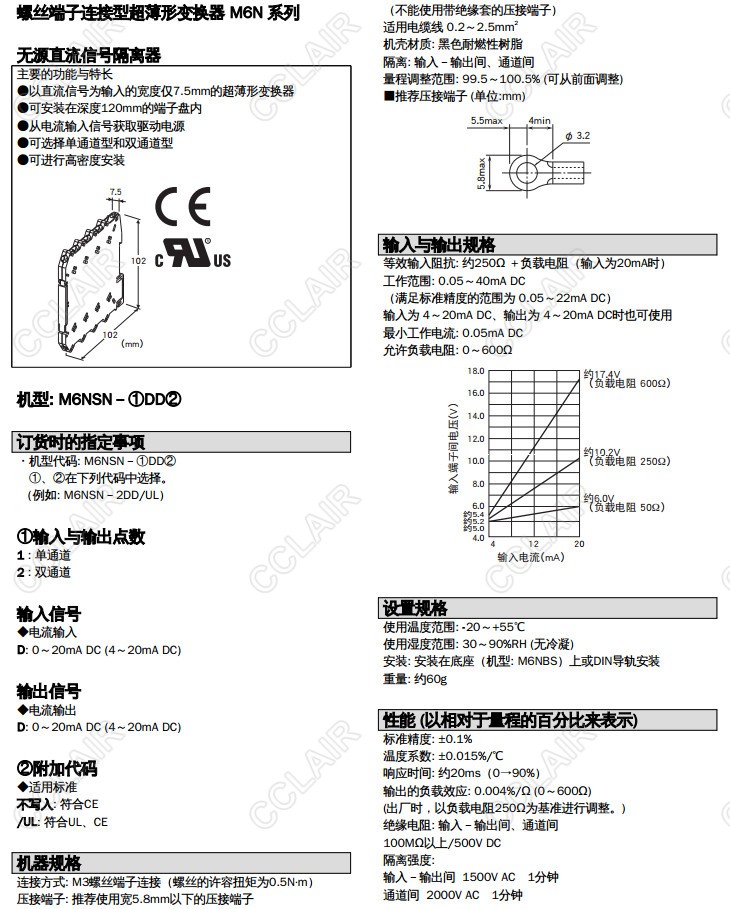 M6NSN-1DD,M6NSN-2DD,M6NSN-1DD/UL,M6NSN-2DD/UL,M6NSN,無源直流信號隔離器