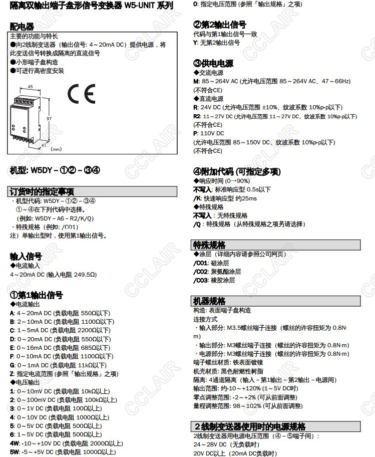 W5DY-AA-M,W5DY-AC-R,W5DY-A5-R2,W5DY-A6-R2,W5DY-A6-R2/K,W5DY-A6-R2/Q,W5DY,信號變換器