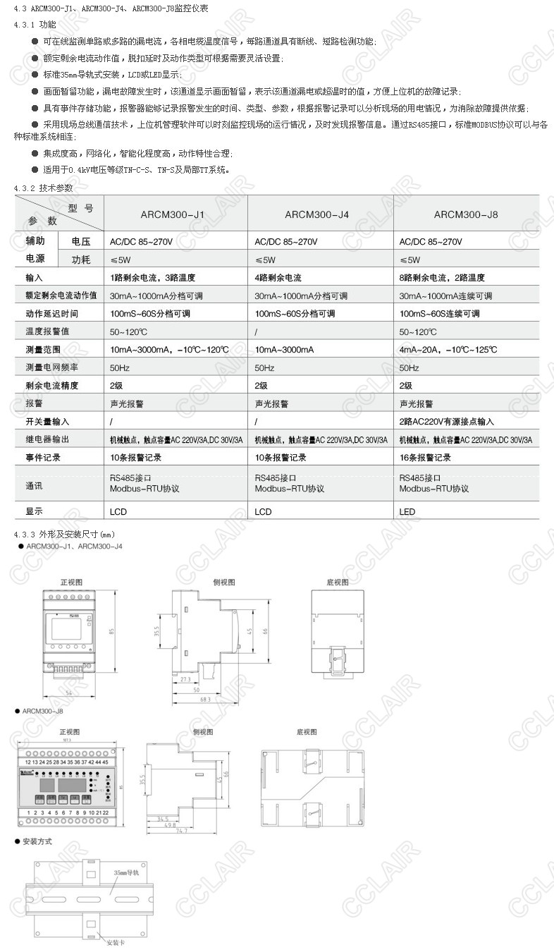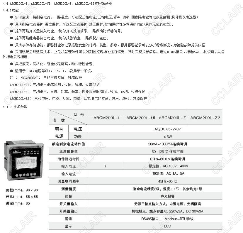 ARCM100-Z,ARCM200BL-J1,ARCM200BL-J4,ARCM200L-J8,ARCM200L-Z,ARCM,剩余電流式電氣火災(zāi)監(jiān)控裝置