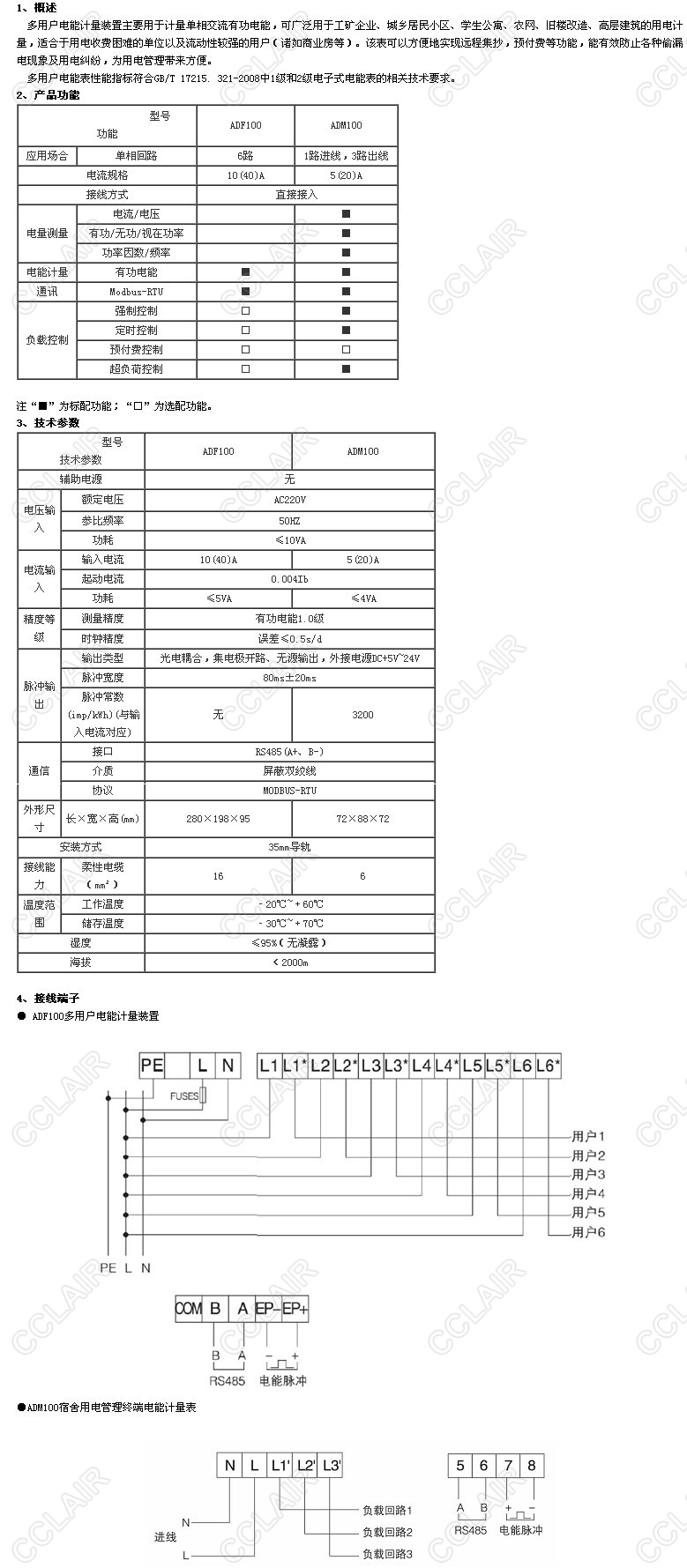 ADF100,ADM100,多用戶電能計量裝置