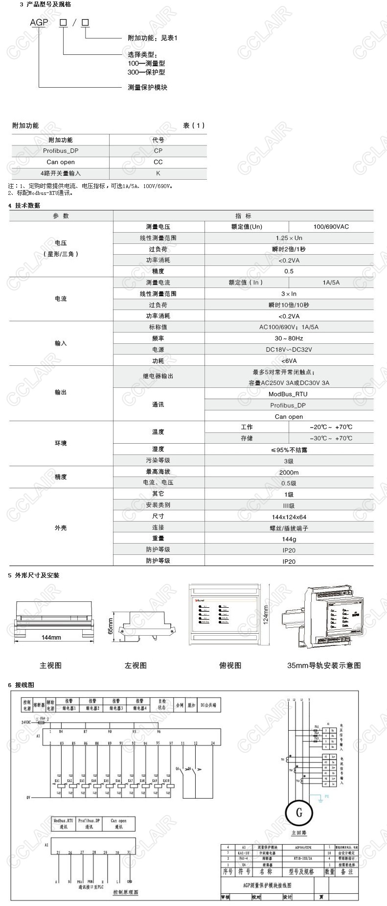 AGP測量保護(hù)模塊,采用最新的32位單片機(jī)技術(shù),具有抗干擾能力強(qiáng)、工作穩(wěn)定可靠、數(shù)字化、智能化、網(wǎng)絡(luò)化等特點(diǎn)。通過檢測線路的電流、電壓、頻率等參量,實(shí)現(xiàn)線路的測量及保護(hù)。該模塊可具有RS485遠(yuǎn)程通訊接口、Modbus-RTU、Profibus-DP、Can Open通訊接口、開關(guān)量輸入、繼電器輸出等功能,方便與PLC、工控機(jī)等工控設(shè)備組成網(wǎng)絡(luò)系統(tǒng),實(shí)現(xiàn)線路運(yùn)行的遠(yuǎn)程監(jiān)控。