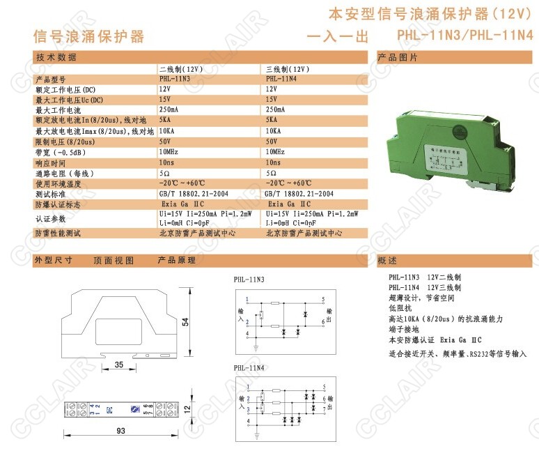 PHL-11N3,PHL-11N4本安型信號浪涌保護器