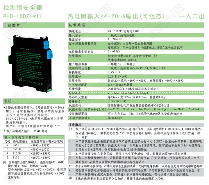 PHD-12DZ-211,PHD-12DZ-311,PHD-12DZ-411,PHD-12DZ-511,PHD-12DZ檢測端安全柵
