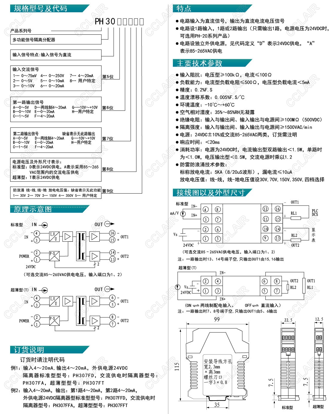 PH307FD,PH307FA,PH307FT,PH307FFD,PH307FFA,PH307FFT,PH-30,直流型信號(hào)隔離器