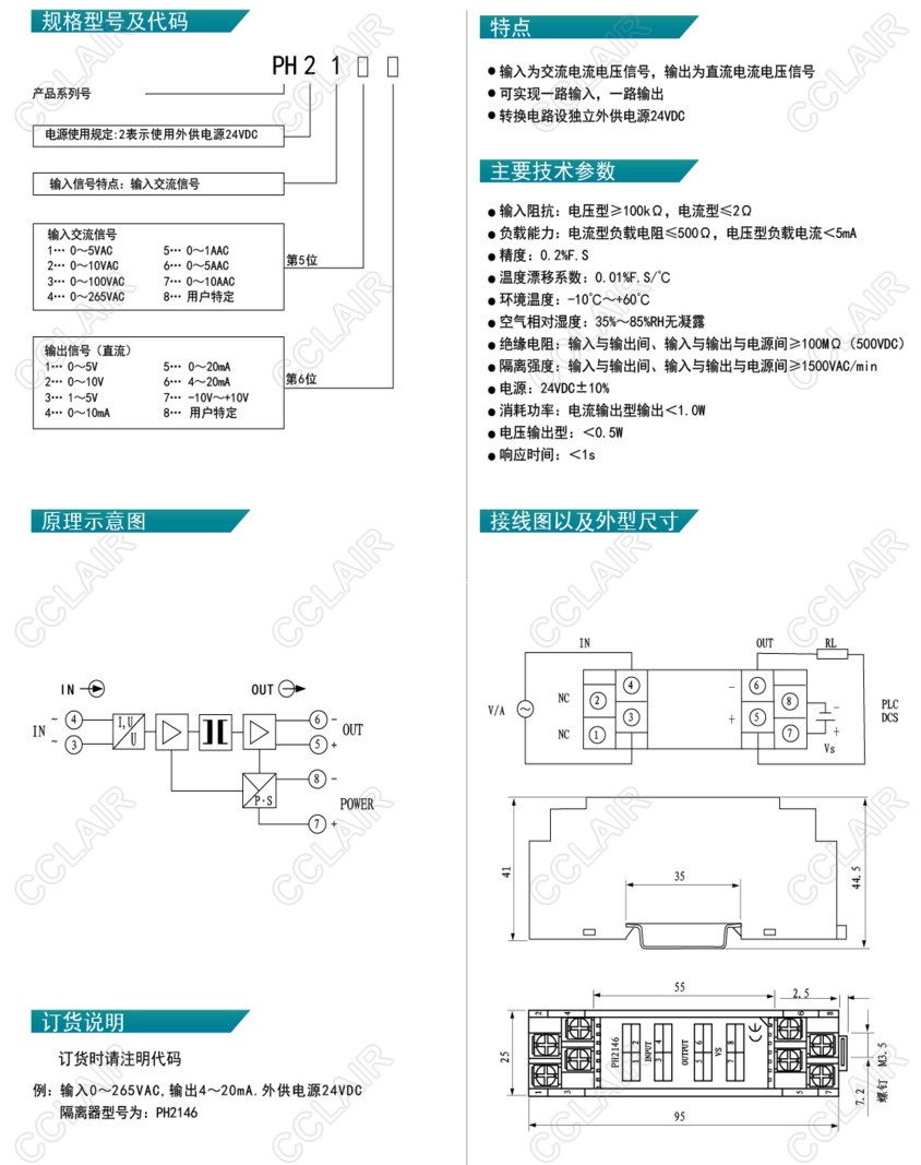 PH2112,PH2133,PH2146,PH2154,PH2167,PH-2116,PH-2134,PH-2176,PH-21,交流型信號(hào)隔離器 |