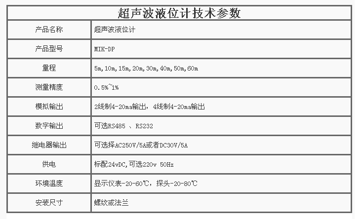 MIK-DP一體式超聲波液位計(jì),集液位水位測(cè)距顯示變送等功能于一體,被測(cè)介質(zhì)幾乎不受限制,可廣泛應(yīng)用于各種液體和固體物料高度的測(cè)量。