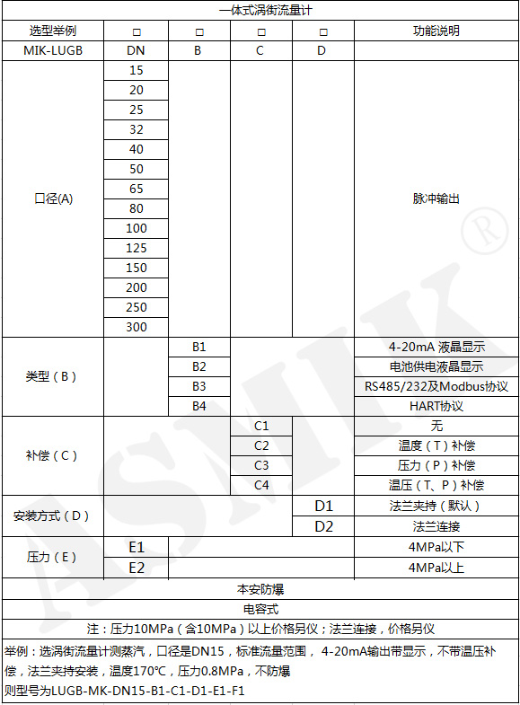 LUGB-MK-DN15-B1-C1-D1-E1-F1,MIK-LUGB渦街流量計MIK-LUGB-DN25,MIK-LUGB-DN40,MIK-LUGB-DN50,MIK-LUGB-DN265,MIK-LUGB-DN80,MIK-LUGB-DN100,MIK-LUGB-DN125,MIK-LUGB-DN150,MIK-LUGB-DN200,MIK-LUGB-DN250,MIK-LUGB-DN300,