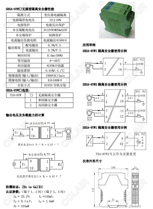 SHSA-8YW1,SHSA-8YW2,SHSA-8YW,無源型隔離安全柵