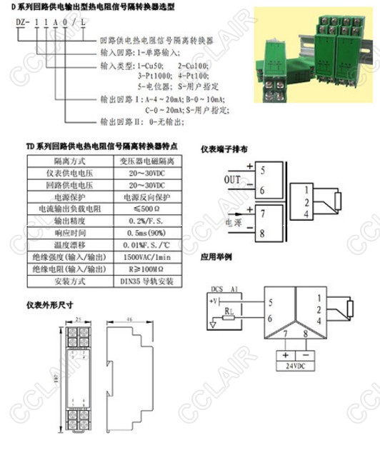 DZ-11A0/L,DZ-12B0/L,DZ-13C0/L,DZ-14A0/L,DZ-15C0/L,回路供電熱電阻信號隔離轉(zhuǎn)換器