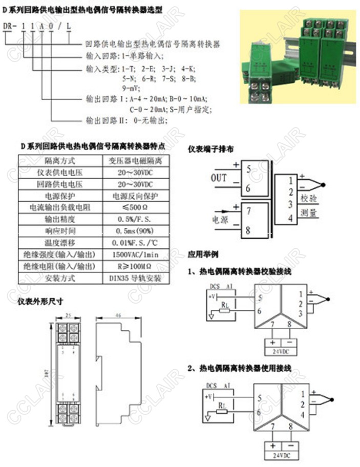 DR-11A0/L,DR-12B0/L,DR-13B0/L,DR-15C0/L,DR-18C0/L,回路供電輸出型熱電偶信號隔離轉(zhuǎn)換器