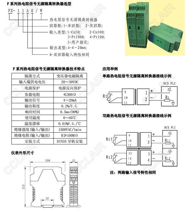 FZ-11A0/W,FZ-12A0/W,FZ-13A0/W,FZ-14A0/W,FZ-15A0/W,FZ-21A0/W,無源熱電阻信號隔離轉(zhuǎn)換器