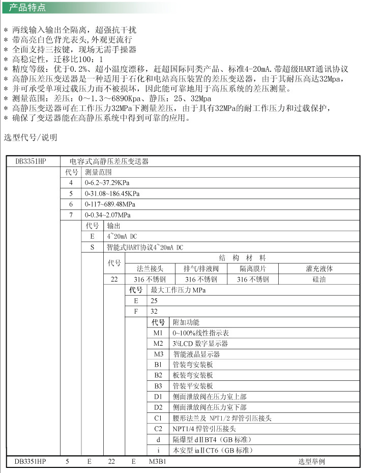 DB3351HP-4,DB3351HP-5,DB3351HP-6,DB3351HP-7,DB3351HP,電容式靜壓差壓變送器