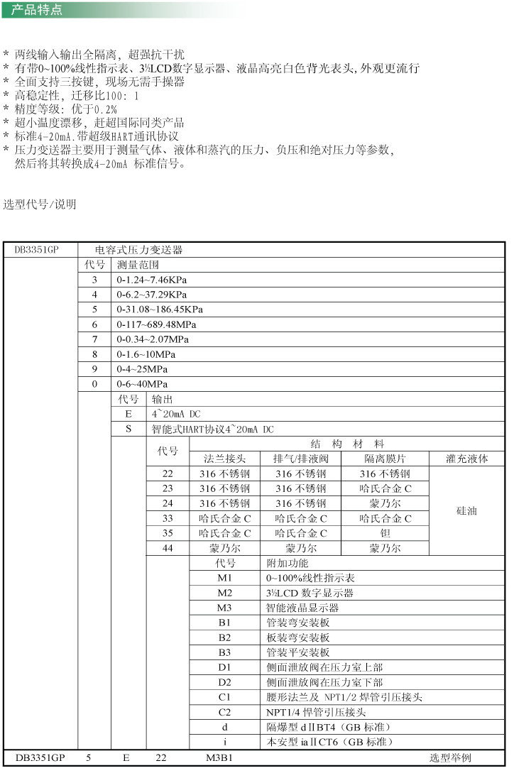DB3351GP-3,DB3351GP-4,DB3351GP-5,DB3351GP-8,DB3351GP-9,DB3351GP,電容式壓力變送器 DB3351GP-6,DB3351GP-7,DB335